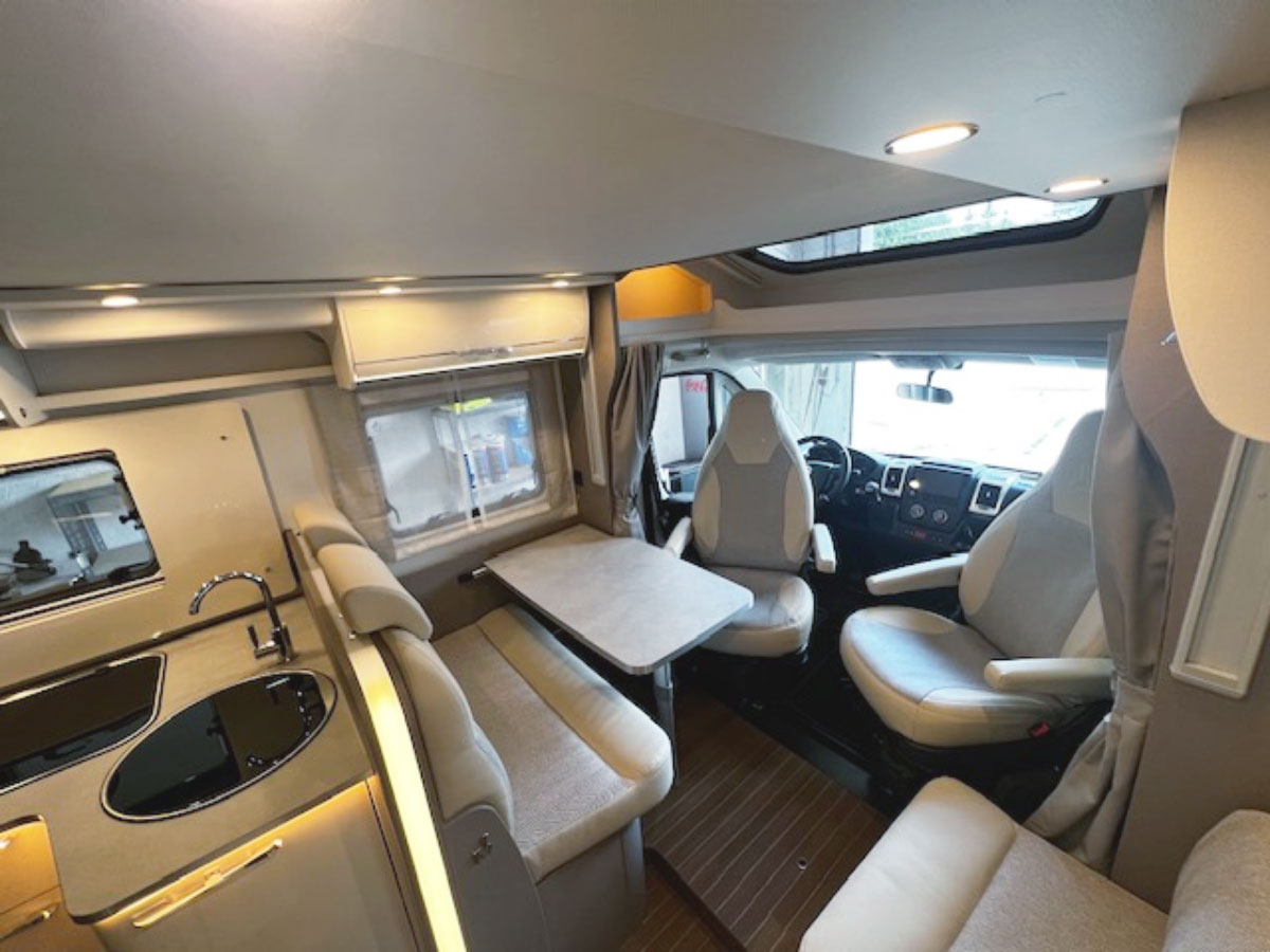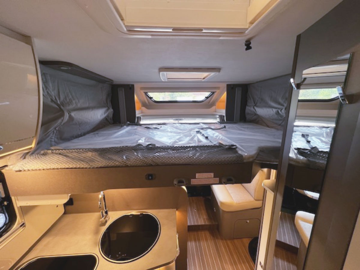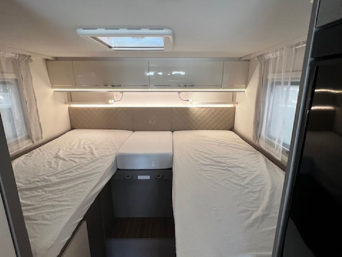 Entdecke das Raumwunder „Hermine“ – der ETRUSCO T6900 SB. Mit einer Länge von unter 7 Metern bietet dieses Einzelbetten-Modell erstaunlichen Platz für deine Abenteuer. Tauche ein in den Luxus von praktischen Einzelbetten und einem großzügigen Raumangebot. Doch das ist noch nicht alles. „Hermine“ überrascht dich mit einem optionalen, elektrischen Hubbett, das zusätzlichen Schlafplatz bietet. Das neue Etrusco Modell glänzt außerdem mit einer geräumigen Heckgarage, einem cleveren Kleiderschrank und einem vielseitigen Vario-Bad.